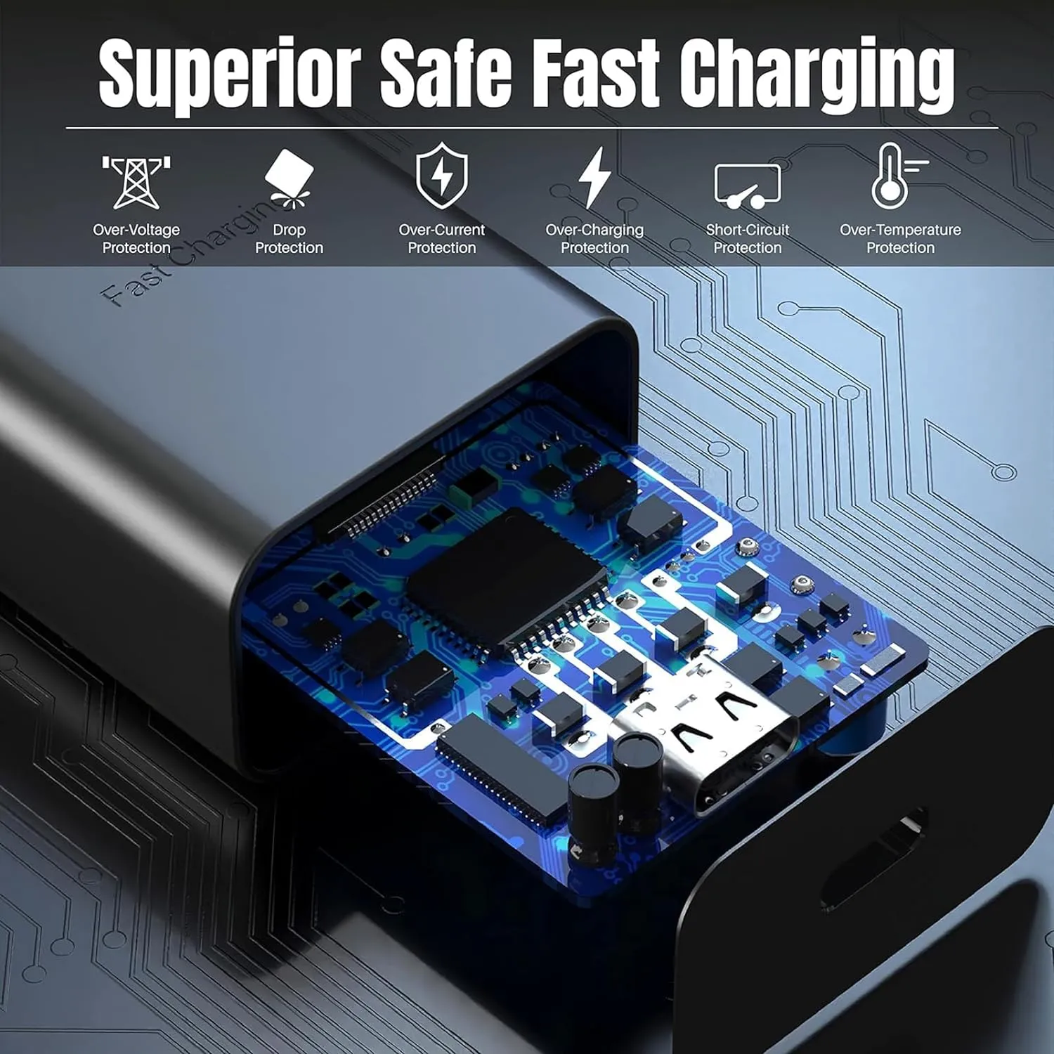 - • Fast charger for Mobile Phones, iPhone 15, Samsung Phones, Google Pixel Phones, Huawei Phones, Redmi Phones, Apple Charger, Macbook, Lenovo, Thinkpad