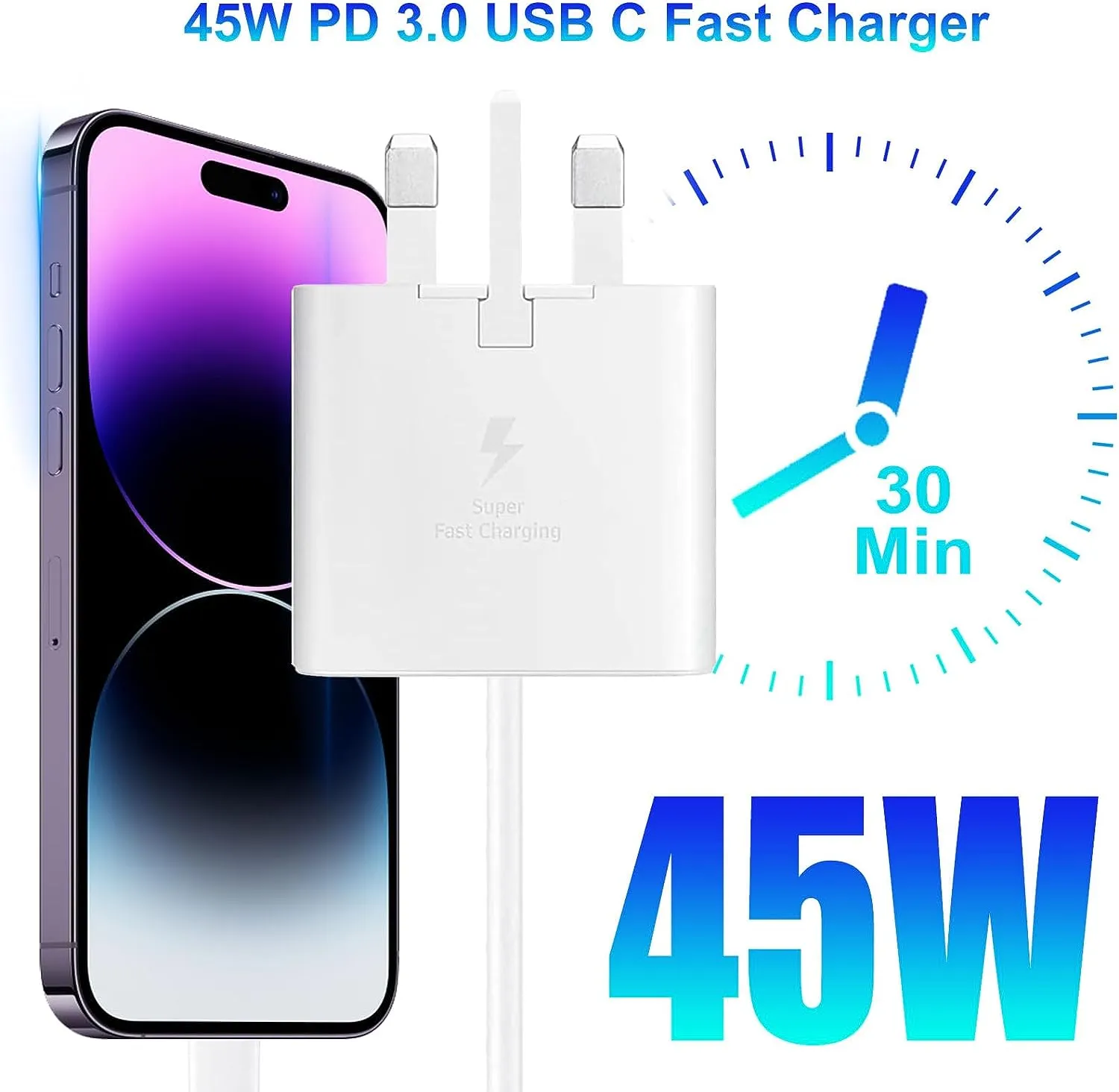 【45W Super Fast Charger】: 45W Power Delivery output enables this Felectrico USB Charger to charge the latest Samsung Galaxy S24 at full speed, 30 minutes from 0% to 50%, and 70 minutes from 0% to 100%.
