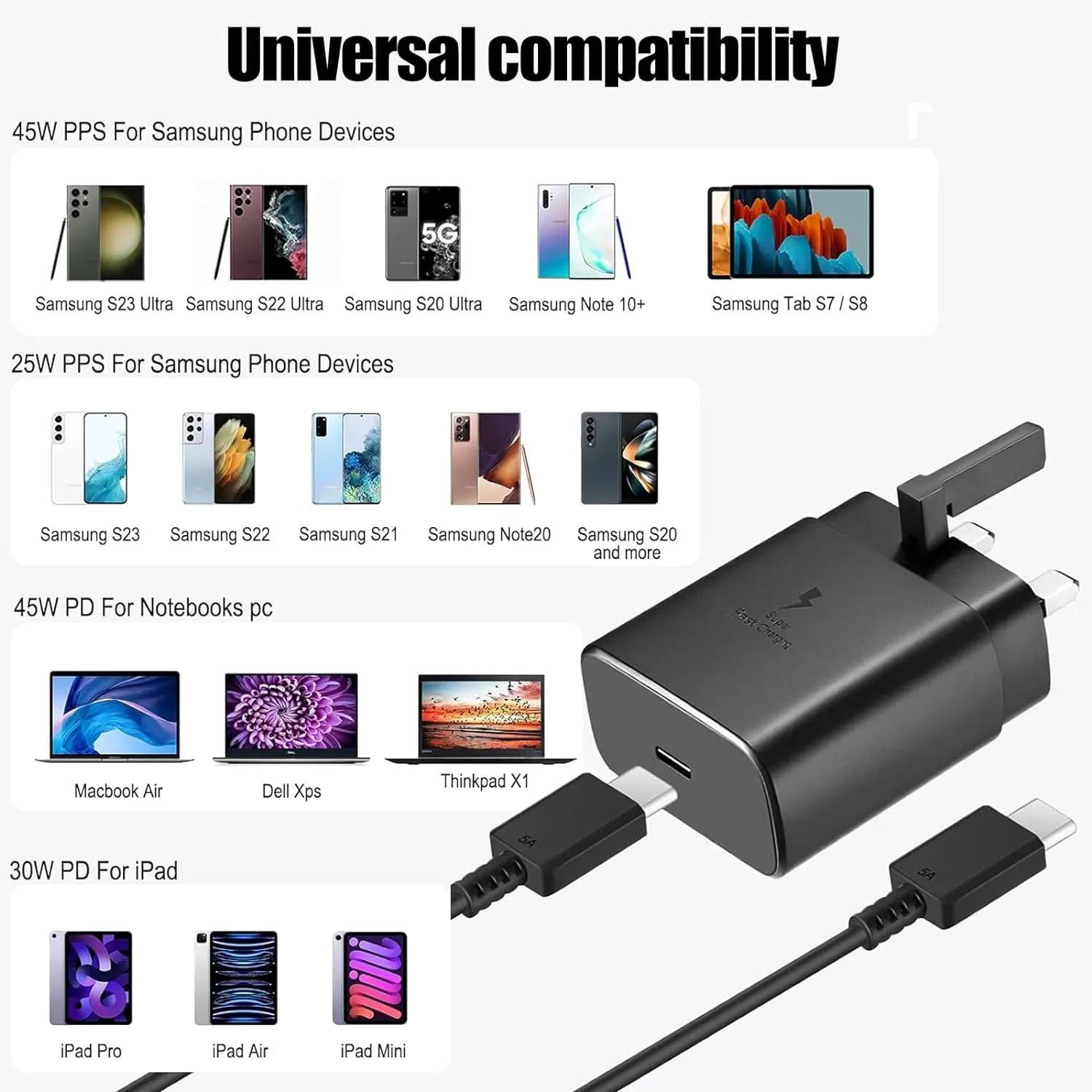 【Universal Compatibility for Samsung/Redmi/Google Pixel/ Oppo】: Compatible with Samsung Galaxy S24, Samsung Galaxy S24+, Samsung Galaxy S24 Ultra, Samsung Galaxy S23, Samsung Galaxy S23 +, S23 Ultra, Samsung Galaxy S22, S22 +, Samsung Galaxy S22 Ultra, S21, S21 FE, S21 Ultra, S20, S20 FE, S20 Ultra, S10, S9, S8, Note 20, Note 20 Ultra, Note 10, A13, A53, A52, A51, A50, A33, A72, A71, A70, A04s, A03s, Z Flip5, Z Flip4, Z Flip3, Z Fold5, Z Fold4, Z Fold3, Z Fold2 Tablet, Xiaomi mi 13 12 11 pro ultra usb type c quick charge cable charger fast charger for redmi note 12 11 10 pro. Felectrico 45W Super Charger with Type C Cable | Felectrico 45W Super Charger Adapter with Type C Cable | Felectrico 45W Super Charger for Find N, A74, A95, A96, A76, A57e, A77, F19, F19s, F21 Pro, F21S Pro, K10, K10 5G & Many other Devices.